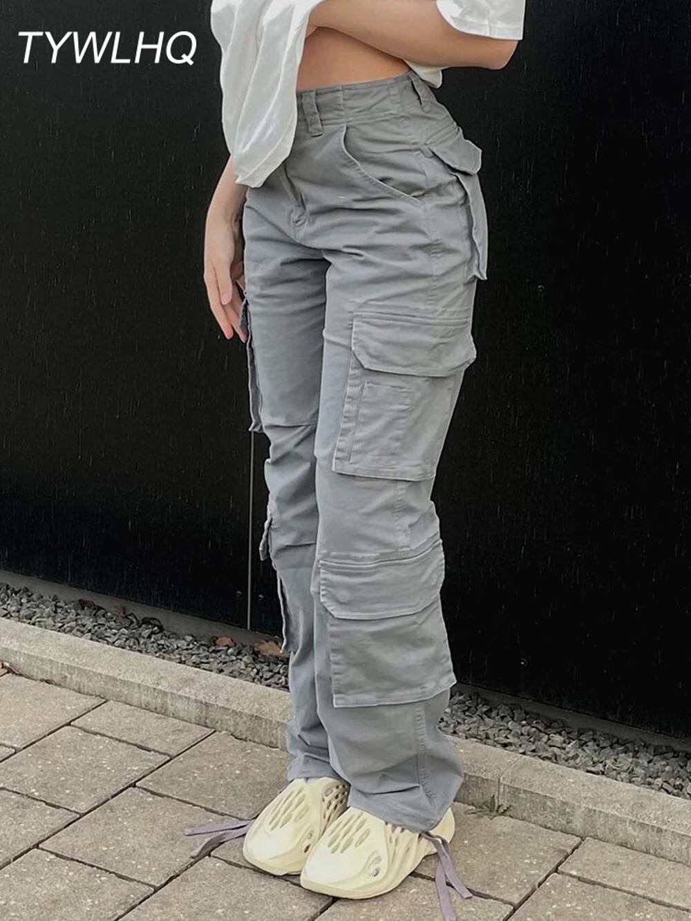 レディースヴィンテージカーゴパンツ、バギージーンズ、90sストリートウェア、ポケット、ワイドレッグ、ハイウエスト、ストレート2kデニム、オーバーオール、ファッション ボトム ワイドレッグ バギーパンツ T240831224025_03 | HUG-L