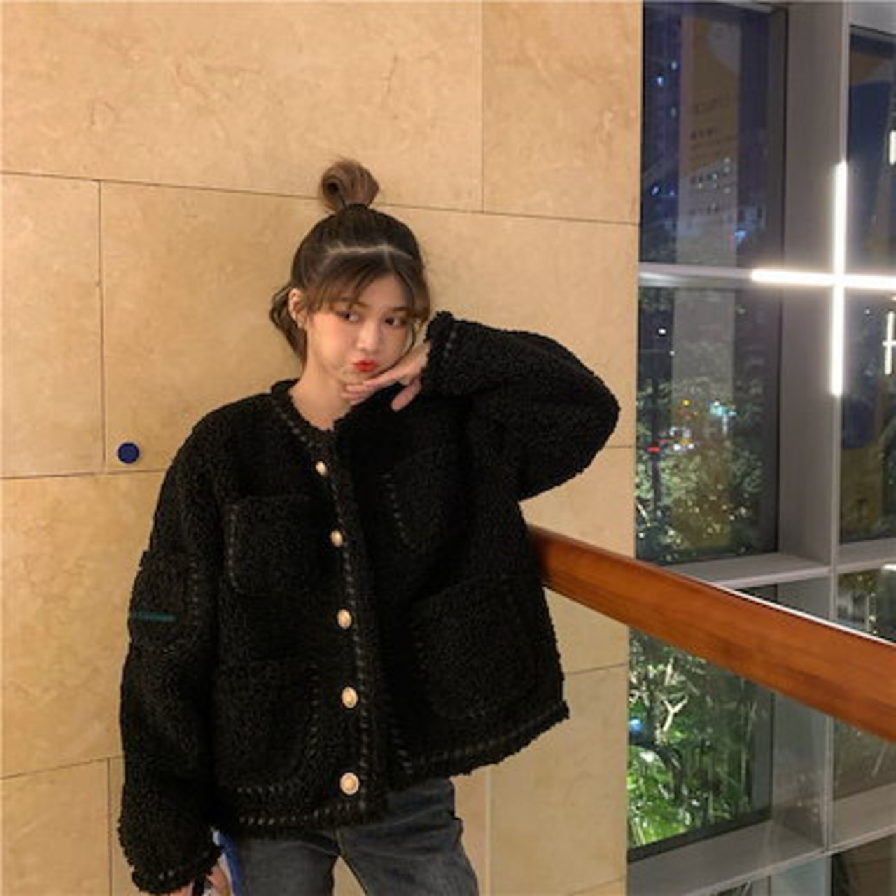 レディース ラムズフリース 秋冬 オールマッチ ゆったり ショット丈 丸ネック気質ノーカラーコートライダースキルティングアウター