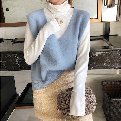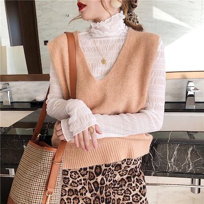 ノースリーブニットVネックベスト 今年はベストブームの予感 春秋ニットベスト 秋冬 ゆるっとお洒落AWアウター
