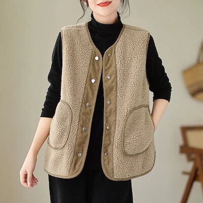 ラムズウール ノースリーブ 秋冬 ゆったり プラッシュ ベスト シンプル ふわふわ トップス アウター 裏起毛 厚手 ショット丈 防寒 ウォームウォーム ラムズフリース