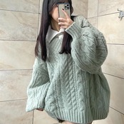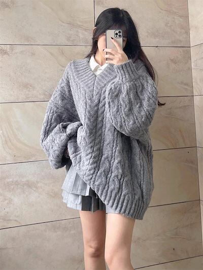 【2枚購入で 3oo円OFF!】可愛い 厚手 ニット セーター レディース Vネックセーター Vネックニット 秋冬 ロング ニットトップス トップス チュニック プルオーバー カシミヤタッチ 福袋 | HUG-L