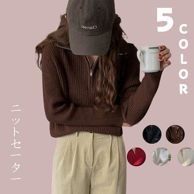 韓国ファッションレディース ベーシックニット ジップジャンパーニットセーター女性ルーズアウターウェアボトムファッショナブルなトップス