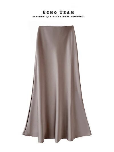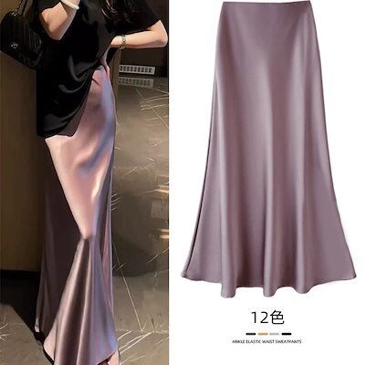 ハイウェスト 着痩せ セミロング プリーツスカート サテン スリップスカート 春夏 タイトスカート 通勤 セクシー スカート
