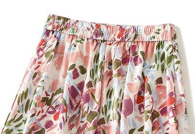 おしゃれ 着痩せ サテン プリント柄ワンピ マキシスカート ハイウェスト ドレープ感 スカート 夏 薄い Aライン ロングスカート