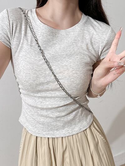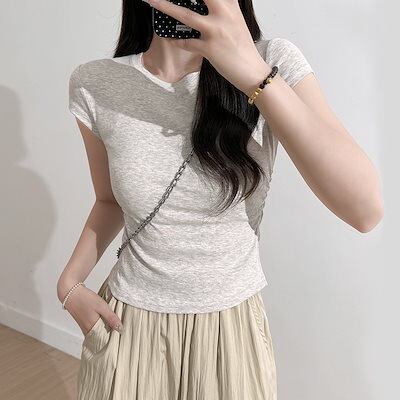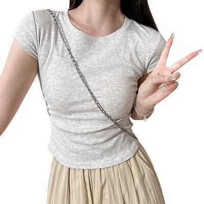 Tシャツ 丸首 正肩 半袖 夏 2024年新作 スリムフィットショート丈 トップス レディース 韓国
