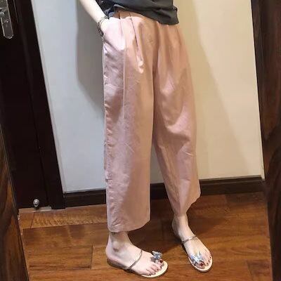かっこいい!スラックスパンツ2024新型ゆったり 夏の薄手 ピンク カジュアル ハイウエストワイドパンツ