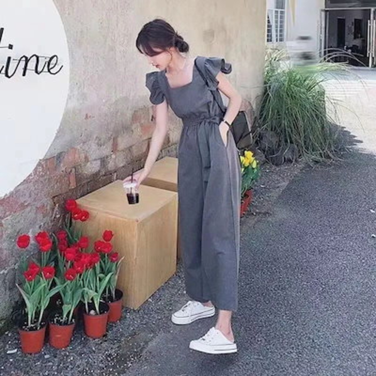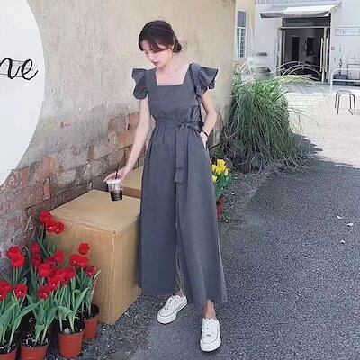 涼しく楽ちんセットアップ 高級感 フリルスリーブなしワイドパンツ 夏2024新型 ハイウエスト レディース 韓国ファッション