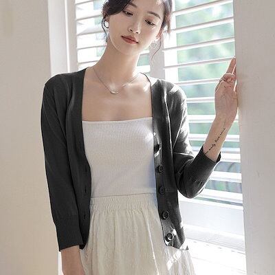 【3日以内出荷】カーディガン uvカット アウター はショート丈 春夏新作 七分袖 vネックスリムストール コートで 日焼け止め レディース 韓国ファッション