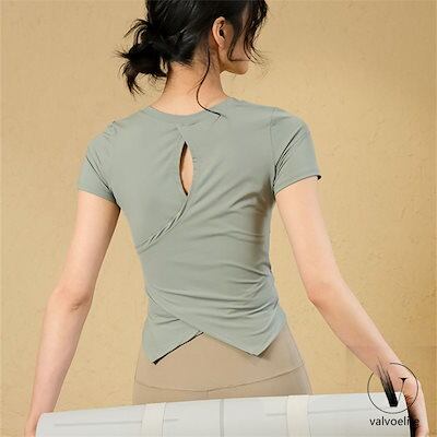 おしゃれヨガウェア/お家ヨガウェア レディース 半袖薄型速乾スポーツ 上着 Tシャツ 修身トレーニングフィットネスウェア2024年夏 トップス 韓国ファッション
