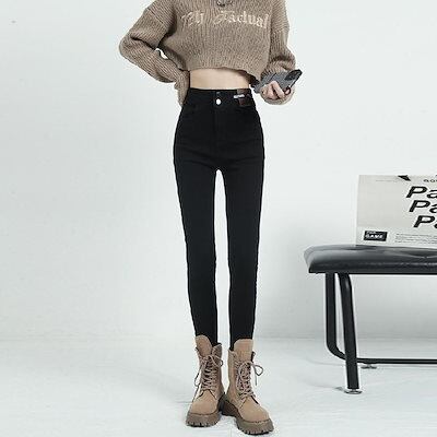 2023 秋 冬 デニムパンツスキニーパンツ タイト 裏起毛 デニムパンツ ジーンズ レディース ファッション スリム 着痩せ 小柄 ハイウェスト 秋 冬 ダブルブレスト スキニーパンツ ス ズボン | HUG-L