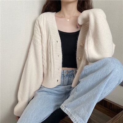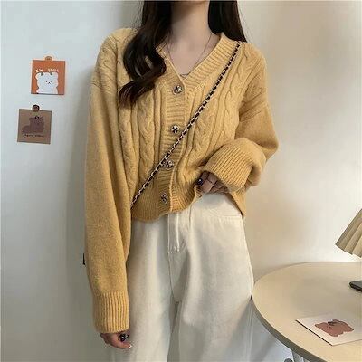 ジャケット トップス 韓国ファッション カーディガン ベーシックニット 長袖ブラウス 体型カバーチュニック 無地 ニットカーディガン 春 カーディガン ニット セーター コート あったか!カ韓国ファッ | HUG-L