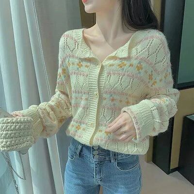 ジャケット トップス 韓国ファッション カーディガン ベーシックニット 長袖ブラウス 体型カバーチュニック ストライプシャツ ニットカーディガン 春 カーディガン セーター レディース 夏韓国ファッシ | HUG-L
