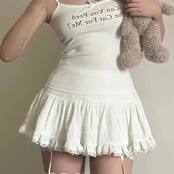 Deeptown-レディースレースメッシュパッチワークミニスカート、ハイウエスト、フレアライン、フリル、ホワイト、フェアリングコア、セクシー、y2k、夏 T240926103807_01 | HUG-L