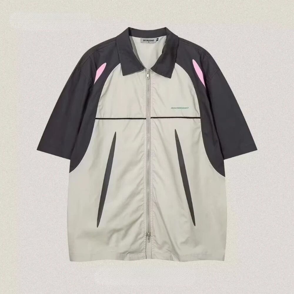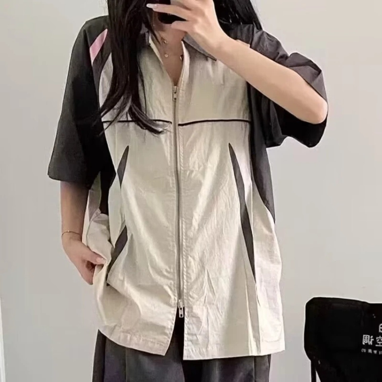 Deeptown-女性用ヴィンテージ原宿半袖ジャケット、ヒップホップ特大ストリートウェア、日本のウインドブレーカー、y2kトップス、2000sスタイル、夏 T240926103842_02 | HUG-L