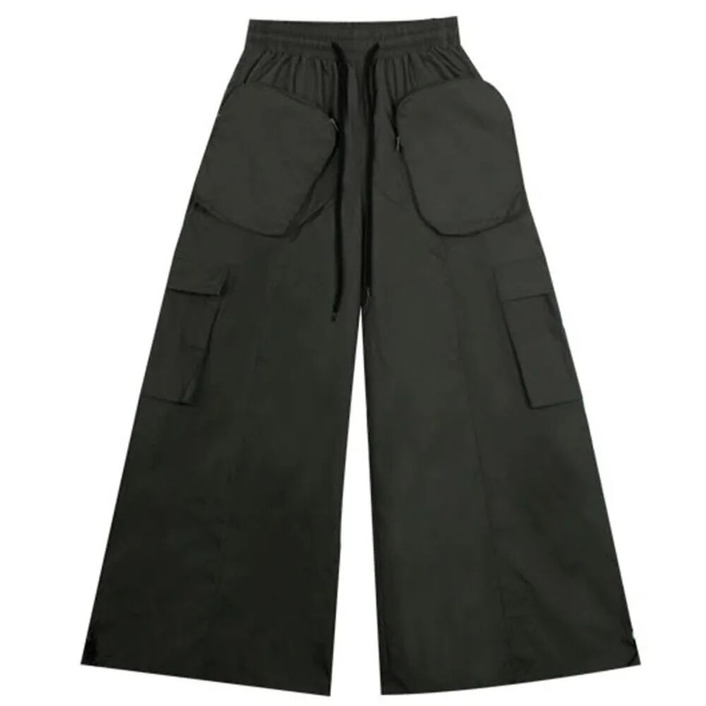 Deeptown-女性のヴィンテージブラウンカーゴパンツ、ハイウエスト、ワイドレッグパンツ、バギーパラシュートパンツ、韓国のストリートウェア、kpechwear、y2k T240926103930_02 | HUG-L