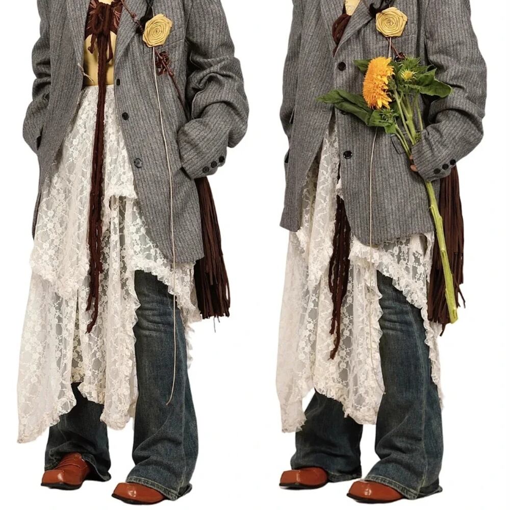 Deeptown-女性のヴィンテージレースロングスカート、不規則なバケーションドレス、自由奔放に生きるチュール、midiを介したを参照、ハイウエスト、エレガントなルーズ、y2k T240926104051_01 | HUG-L