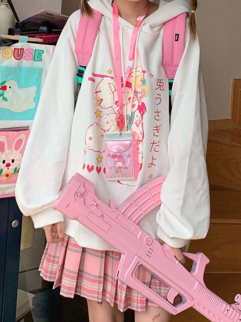 Houzhou-女性の特大のパーカー、フード付きスウェットシャツ、ソフトグリール、かわいい漫画プリント、日本のファッショナブル、原宿、カワイイ、y2k、冬、2023 T240926104112_02 | HUG-L