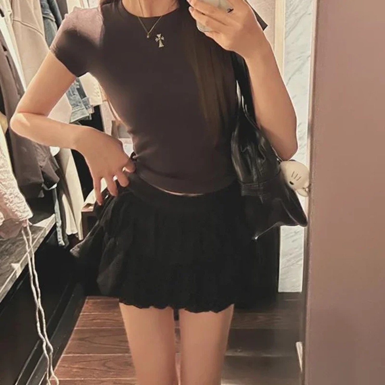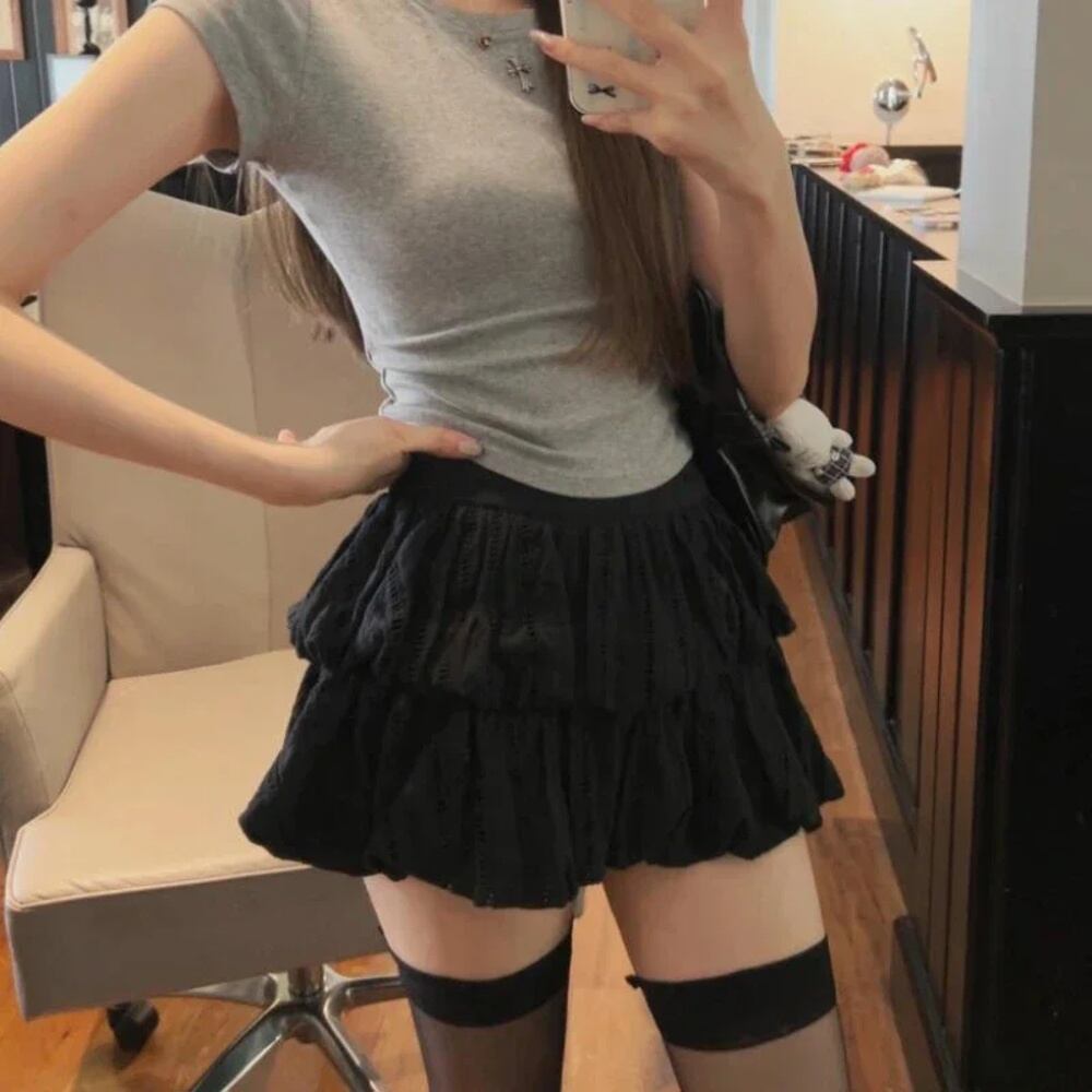 Deeptown-女性のセクシーなブラックミニスカート、レースパッチワーク、ハイウエスト、キュート、カワイイ、韓国のチュチュ、フェアリーコア、y2k、サマーケット T240926104219_01 | HUG-L