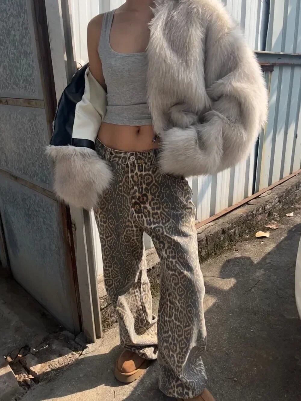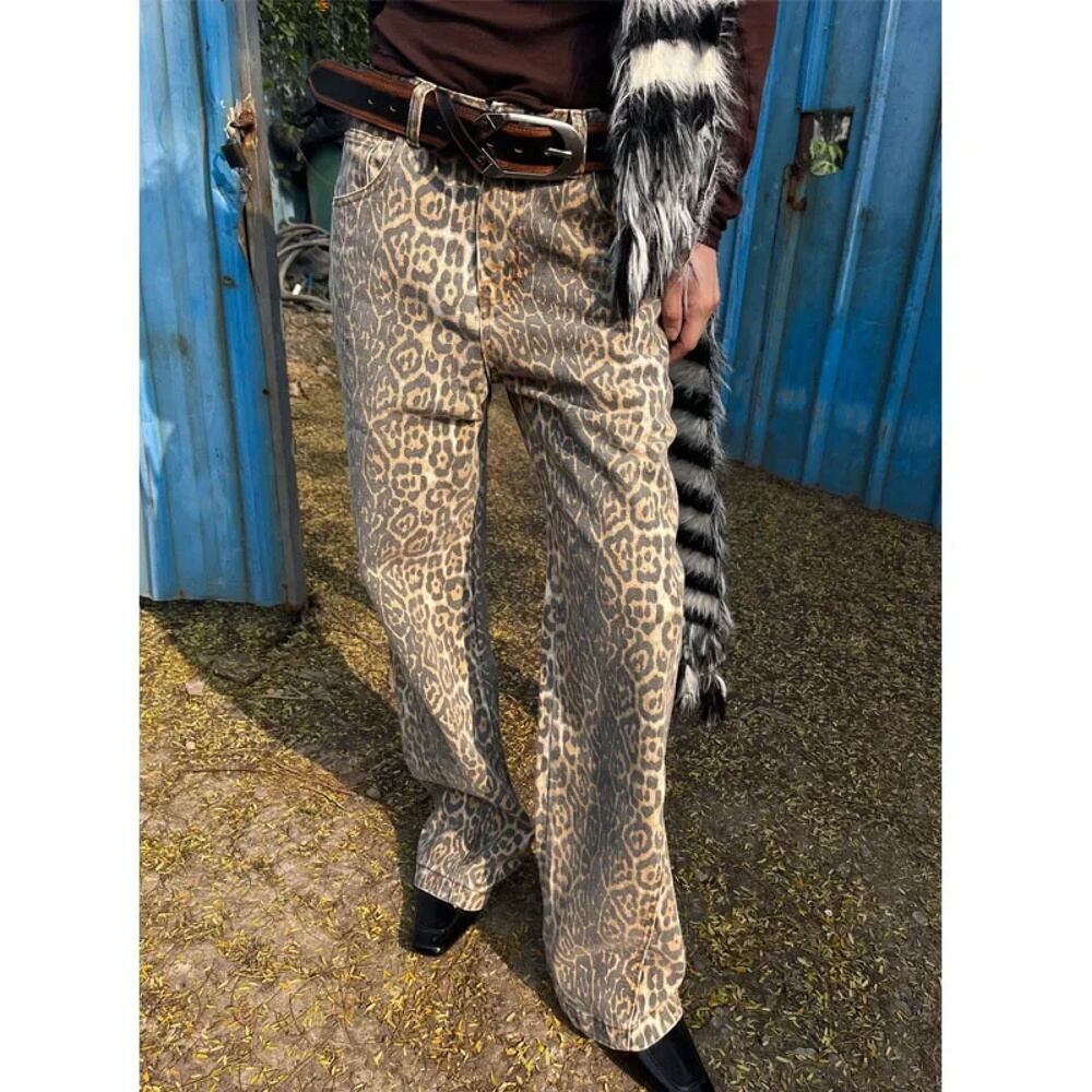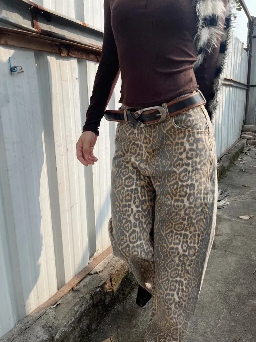 Deeptown-レディースヴィンテージレオパードプリントジーンズ、ヒップホップストリートウェア、デニムバギーパンツ、グランジワイドレッグ、美的、y2k、特大 T240926104331_01