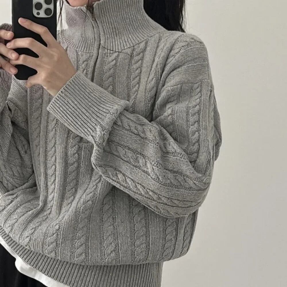 Deeptown-女性のヴィンテージハーフジッパー長袖ニットプルオーバー、ルーズカジュアルセーター、サーマルナイトウェア、韓国のファッション、秋 T240926104438_01