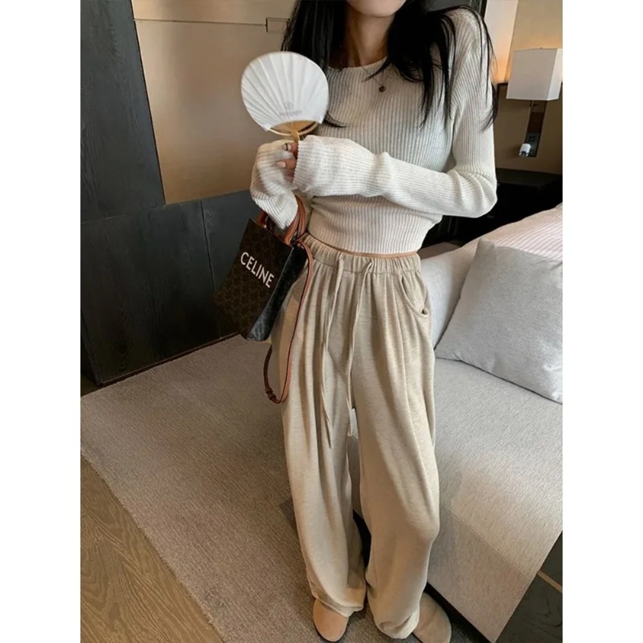 Deeptown-女性用グリースウェットパンツ、ワイドレッグバギー、スポーツパンツ、カジュアル、原宿、ヒップホップ、韓国のファッション、特大ジョギング T240926104523_02 | HUG-L