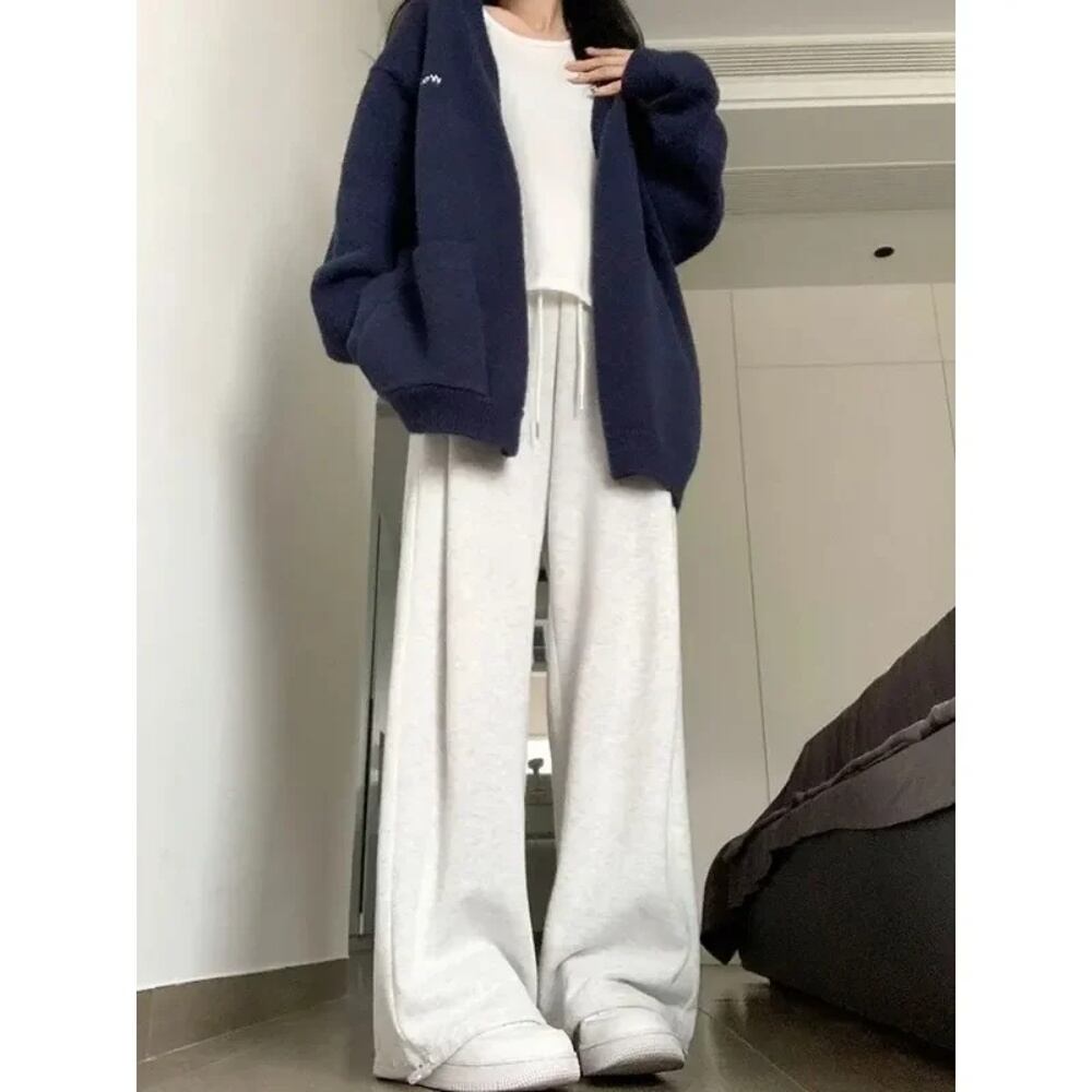 Deeptown-女性の基本的なグレーのスウェットパンツ,韓国のファッション,ジョギング,バギー,スポーツパンツ,カジュアル,原宿,ワイドレッグ,夏 T240926104528_02