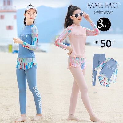 水着 女の子 キッズ セパレート ガールズ水着 長袖 3セット キッズ 子供用 UV対策 日焼け防止 水着 ラッシュガード セット 長袖 かわいい ファッション 海水浴 運動用 温泉 水遊び プール | HUG-L