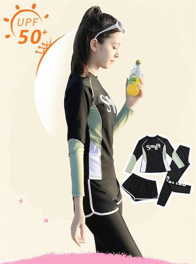 水着 セパレート 女の子 キッズ ブラック ガールズ水着 長袖 3セット キッズ 子供用 UV対策 日焼け防止 水着 海水浴 運動用 温泉 水遊び プール スクール水着 スクールスポーツ水着 ラッシ | HUG-L