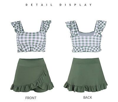 水着 タンキニ水着 韓国 レディース 体型カバー 可愛い フリル 小胸 水着 水着 タンキニ 露出控えめ セパレート 上下セット スカート 可愛い水着 安全パンツ みずぎ 学生 レディース スイム | HUG-L