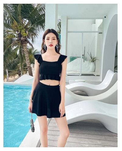 水着 レディース 体型カバー 可愛い フリル 小胸 水着 韓国 水着 タンキニ 水着 タンキニ 露出控えめ セパレート 上下セット スカート 可愛い水着 みずぎ 大人 水着 温泉 プール 小胸 水陸両 | HUG-L