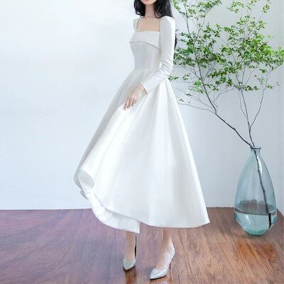 ロングドレス 白 ウェディングドレス 韓国ファッション80 気質 花嫁ロングドレス ドレス ワンピース 結婚式 新作 パーティードレス2024大人気 高級感 結婚式ワンピース