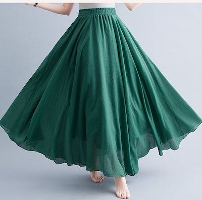 2023 スカート スカート リネン 20色 無地 ロングスカート ウェストゴム ふわふわ 85/95着丈 フレアスカート マキシフレア 麻 涼しい 春 夏 ゆったり 薄生地 好評 軽い | HUG-L