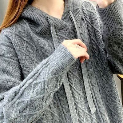 ニットセーター 新作フード付き厚手ニットセーター女性ジャンパー秋冬暖かいルーズインナーセーター