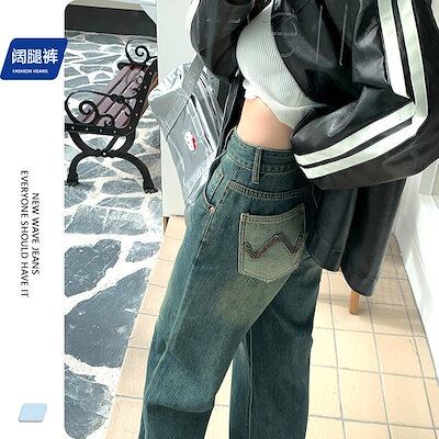 デニムパンツ女性2024新しいハイウエストの小さなレトロなストレートドラッグパンツ