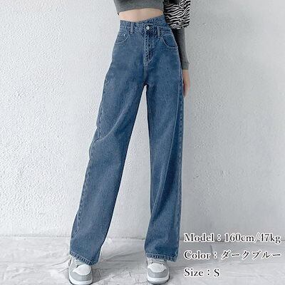 デニムパンツ レディース ジーンズ ストレートデニム ウエストレイヤード風デニムパンツ
