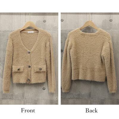 フェザーヤーンカーディガン ニットカーデ ニットカーディガン 秋冬 リブニット