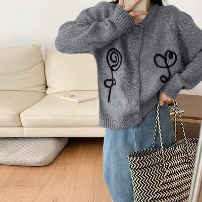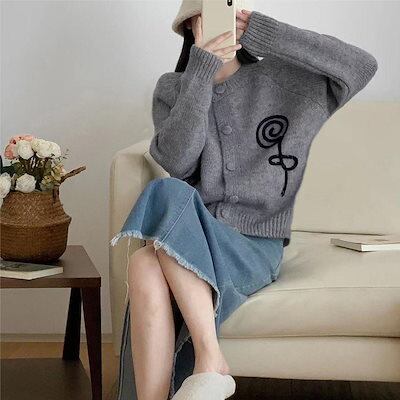 ニットカーディガン 秋冬 リブニット 中厚手ニットカーディガン ニットセーター