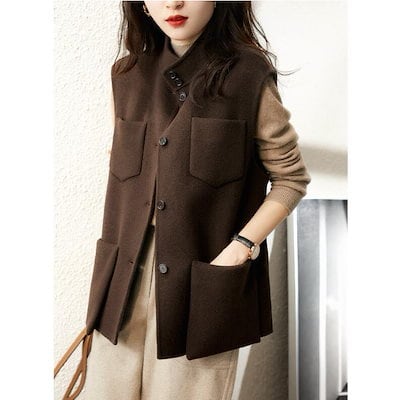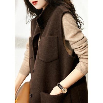 ベスト ジレ レディース 前開き おしゃれ 大きいサイズ ジレベスト アウター コート ジャケット 無地 秋 冬 ジャケット ハイネック 通勤 OL 厚手