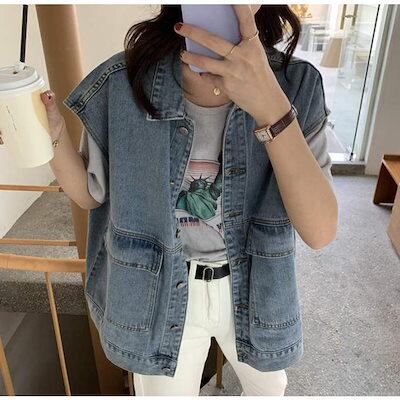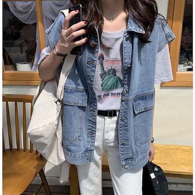 デニムベスト レディース ジレ ノースリーブ ベスト 前開き 春 夏 秋 前ボタン ポケット アウター デニム 羽織り おしゃれ 着やせ 体型カバー