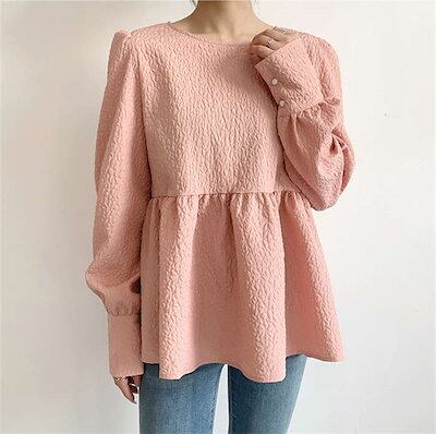 ブラウス シャツ レディース 秋 長袖 ボリューム袖 ジャガードブラウス エンボス加工 Aライン バックリボン トップス ゆったり 大きいサイズ デザイン きれいめ おしゃれ お洒落 大人可愛い カジ | HUG-L