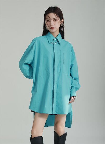 バックボタンシャツ シャツ レディース 春 秋 綿 トップス 長袖 モード系 変形アシメシャツ ブラウス 羽織り 襟付き ロング丈 変形 イレヘム 無地 個性的 ユニセックス 大人 カジュアル ゆった | HUG-L