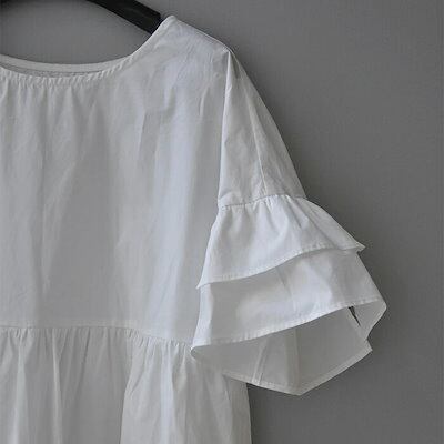 ブラウス Tシャツ レディース チュニック 半袖 春 夏 秋 フレア袖 大きいサイズ ゆったり ロンT ブラウス オシャレ ワンピース ショート丈 カジュアル ウエストギャザー 着回し 体型カバー ゆ | HUG-L