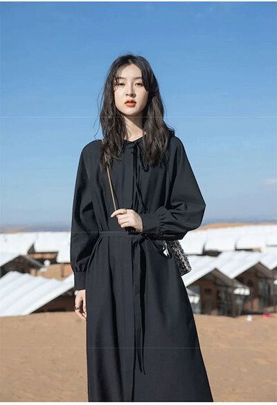 シャツワンピース 長袖 無地 ロングワンピース レディース 春 ホワイト ワンピース キレイめ Aライン フレア ミモレ丈 ワンピ ゆったり シンプル ゆる 体型カバー カジュアル ベーシック 着痩せ | HUG-L
