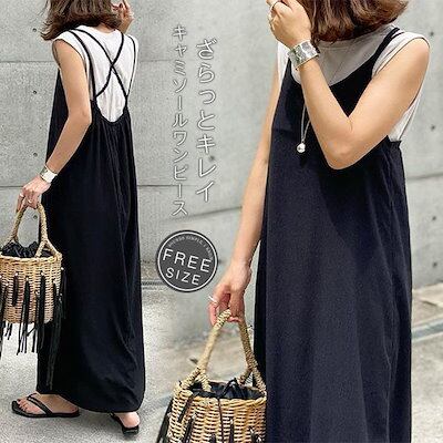ワンピース キャミワンピース 夏 レディース ジャンパースカート ロングワンピ マキシ丈 きれいめ バッククロス ロング サロペット 大きいサイズ ゆったり キャミ 無地 大人カジュアル 大人可愛い | HUG-L