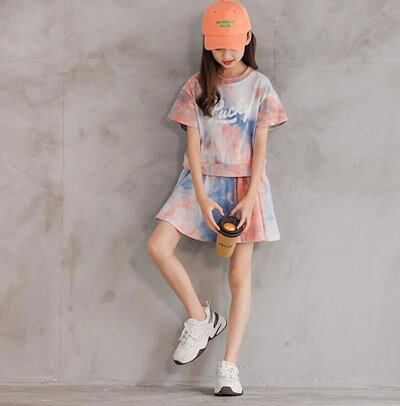 韓国子供服 セットアップ 女の子 半袖 春夏 2点セット ジャージ 上下セット ショートパンツ Tシャツ 薄手 tシャツ+パンツ パンツセット キッズ 子供服 入学式 卒業式 子ども服 ジュニア服 | HUG-L