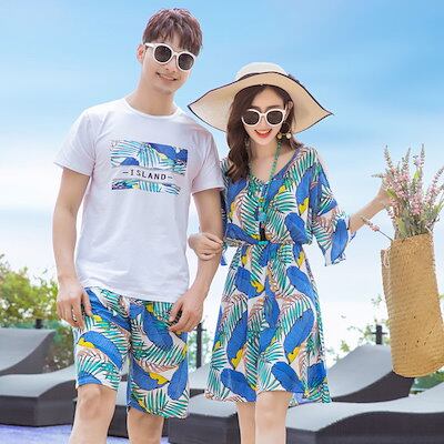 親子お揃い tシャツ ワンピース 上下セット パパママキッズ シャツ ハーフパンツ ペアルック 親子ペア 花柄 レディース メンズ 親子コーデ シャツ ワンピ ペアルック ご家族お揃い 親子 アロハ | HUG-L