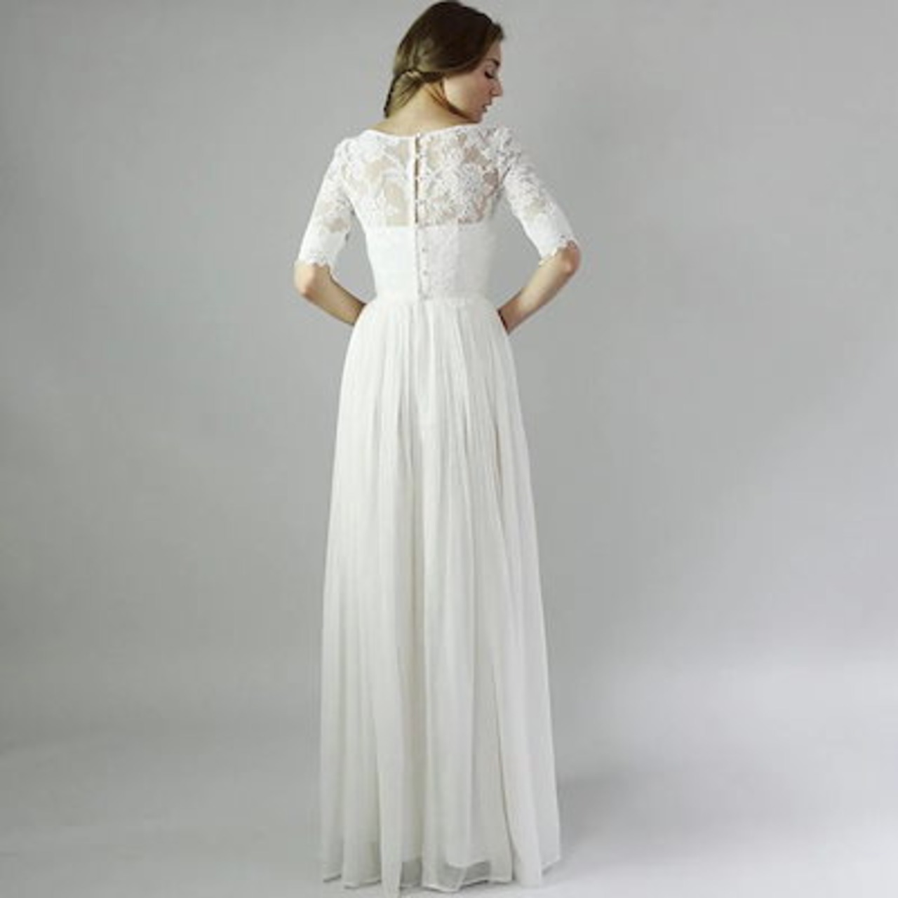 パーティードレス 結婚式 長袖ドレス 40代50代 2次会用 ウェディングドレス前撮り用 袖あり 白