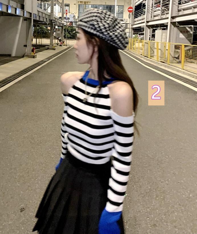 2022秋冬新作 レディース 女 長袖 ボーダー柄 ニット トップス Tシャツ インナー カットソー セーター