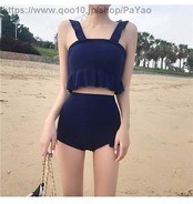 水着ビキニレディースパンツセパレート2点セット上下セット無地タンクトップニットフリルハイウエストビーチウェア大人可愛いキュート海盛れるかわいいおしゃれ大人女子主役級存在感女性用OL学生ママ | HUG-L