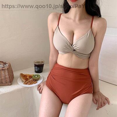 水着ビキニレディースパンツセパレート2点セット上下セット無地リボンタンクトップハイウエストバイカラービーチウェア大人可愛いキュート海盛れるビーチプールおしゃれ大人女子主役級存在感女性用OL学生 | HUG-L